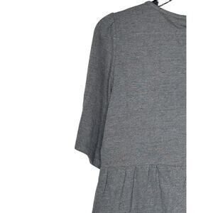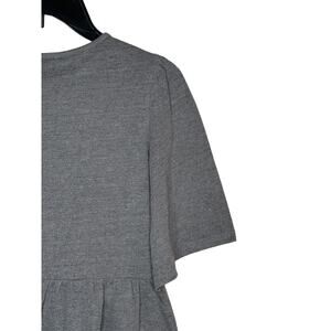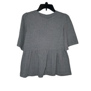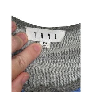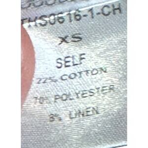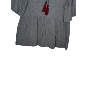 THML Women's Top Poplin Tie Tassled Embroidered Floral Neck Short Sleeve Grey XS