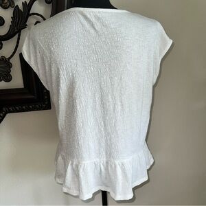 THML Women’s White Crinkle Crewneck Sleeveless Pullover Top Crotchet Accents M
