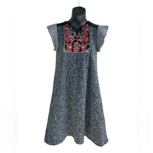 THML Women's black Embroidered Floral Flutter Sleeve Dress velvet shoulders XS
