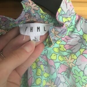 THML baby doll floral green mock neck top