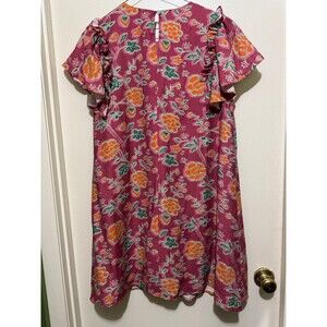 Boho flair easy wear dress. Lovely floral pink pattern with ruffle sleeves. Full lined in pink.