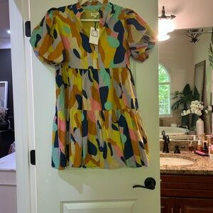 Bright and playful kids dress featuring a vibrant mix of colors. Perfect for any occasion.