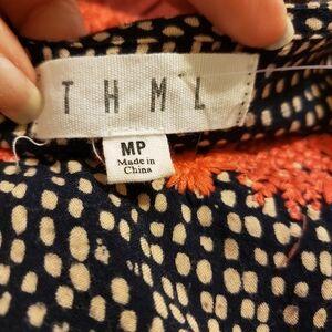 pull on style sleeveless top with embroidered floral pattern black with cream dots