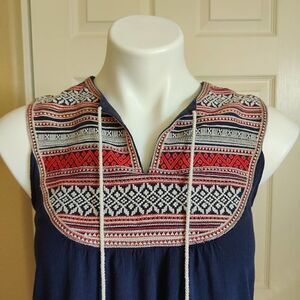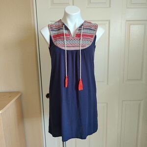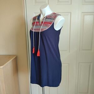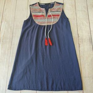THML navy embroidered tassel sleeveless shift dress sz S