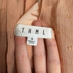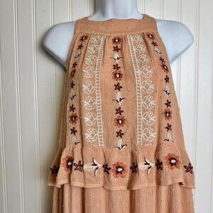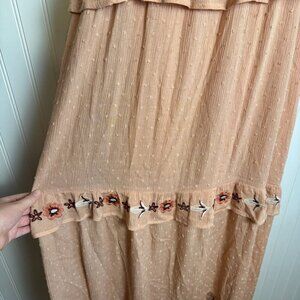 THML peach floral embroidered clip dot halter maxi dress size small C36