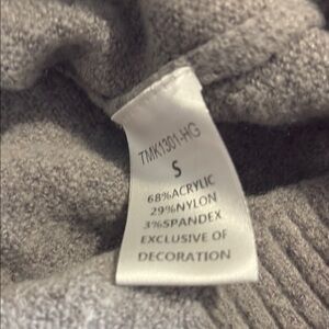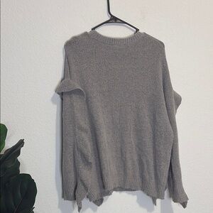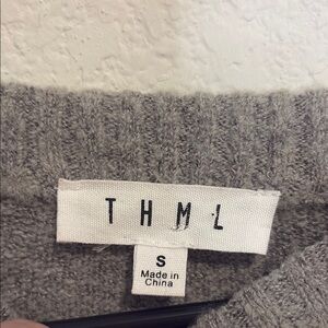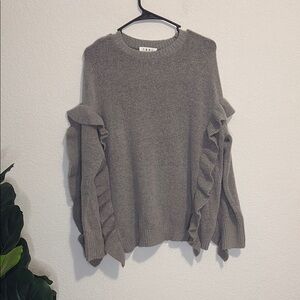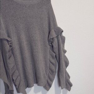 THML size small Stylish gray sweater with ruffled sleeves. Roomy fit. Perfect for a chic look. Ruffle goes up both sides and down both sleeves.