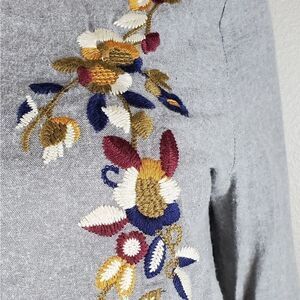 THML Anthropologie Gray Embroidery Blouse with Bell Sleeves