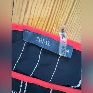 Worn once. Black with bead detailing. Red adjustable straps. Lightweight. Size M