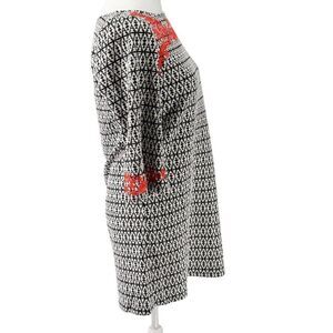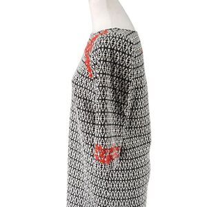 THML Embroidered Tunic Dress Sz MP Tribal Print Black & White w/ Red Floral