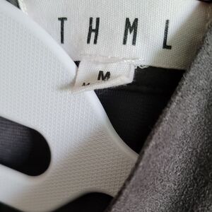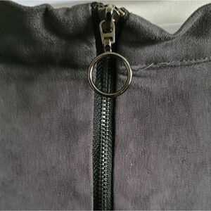THML Gray Faux Suede Boho Dress with Floral Embroidery Medium