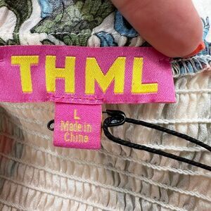 THML NWT Floral Smocked Midi Dress With Ruffle Sleeves Size Large