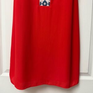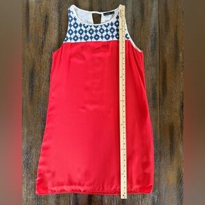 THML Women’s Orange Red Keyhole Halter Blue Embroidered Shift Dress Size M