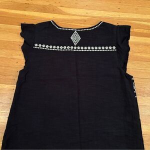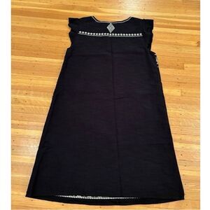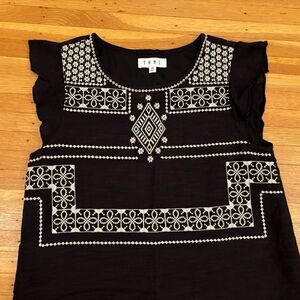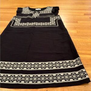 THML black embroidered short sleeve dress. Lined. Sleeveless. 100% cotton. Armpit to armpit 17 1/2 inches. Length 34 1/2 inches. Size XS. Great condition!