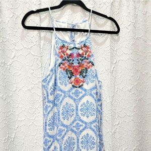 THML sleeveless print dress. Beautiful embroidered floral detail frontand hem. Excellent condition.