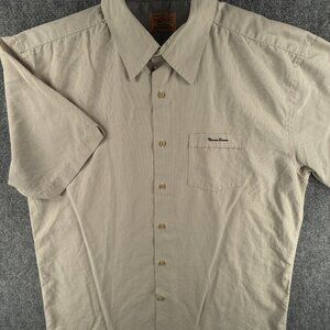 THOM BROWNE Thomas 2XL Short Sleeve Button Up Twin Needle Beige Check Modal Mix