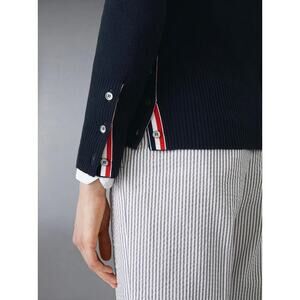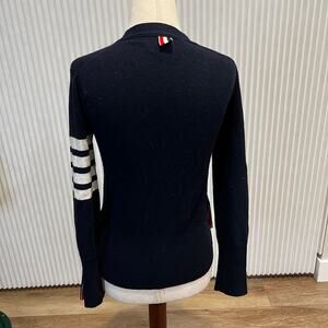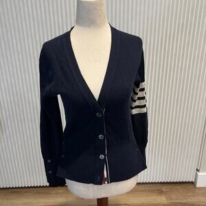 THOM BROWNE Women's Classic Cashmere 4-Bar V-Neck Cardigan Size 42/US6 In Navy