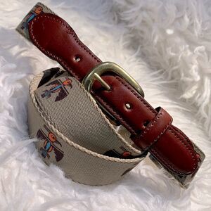 THOMAS Bates Bird Design Fabric Belt Leather Trim 5 Holes Brass Buckle Size 40