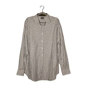 THOMAS DEAN $110 Stripe Floral Pima Cotton Button Down Shirt Men's XL