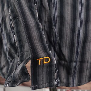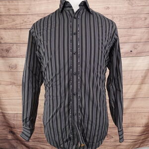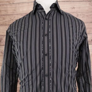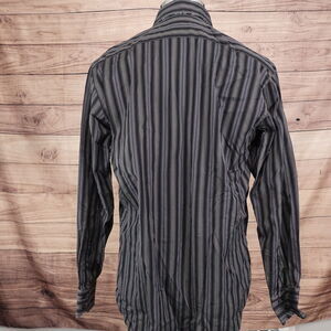 THOMAS DEAN CHARCOAL BLACK STRIPED GREY BUTTON DOWN SHIRT MENS SIZE M MEDIUM