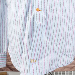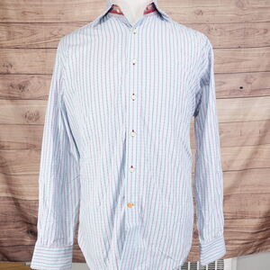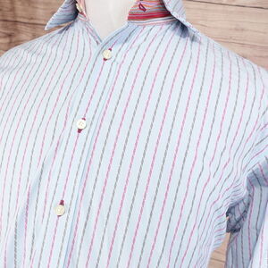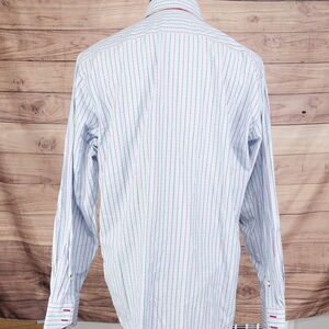 THOMAS DEAN LONG SLEEVE BLUE STRIPED BUTTON DOWN SHIRT MEN SIZE L LARGE