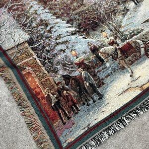 THOMAS KINKADE Green Multi Winter Scene Tapestry Throw Blanket USA 46” X 68”. Good pre-owned condition. Gentle signs of wear. No stains, holes or snags.