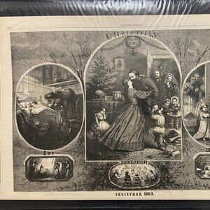 This genuine antique WOOD-CUT engraving/print is titled "CHRISTMAS 1863", published in "Harper's Weekly" by THOMAS NAST, December, 1863.