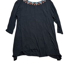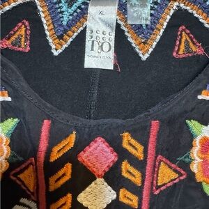 🌸✨THOMAS & OLIVIA Boho Embroidered Tunic Top Black Multicolor XL✨🌸