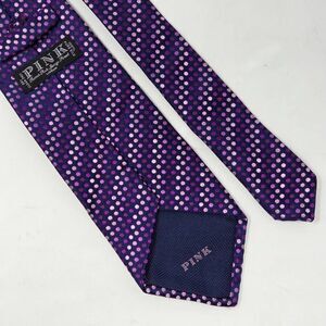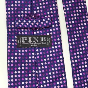 THOMAS PINK SILK TIE PURPLE PINK POLKA DOT TEXTURED SATIN 3.5" X 58"