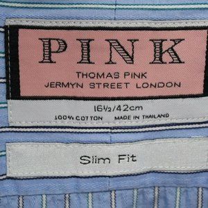 THOMAS PINK SLIM FIT STRIPED BUTTON SHIRT 16.5-EUC