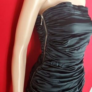 THOMAS WYLDE Black Silk Ruched Strapless Dress Size XL