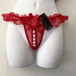 Women’s Sexy Lace Cutout Panties, Thongs G-String with Pearls Ball Sexy Underwear
