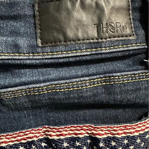 THORN denim shorts women's size 10, with USA flag accents, great condition, smoke and pet free home