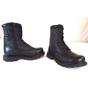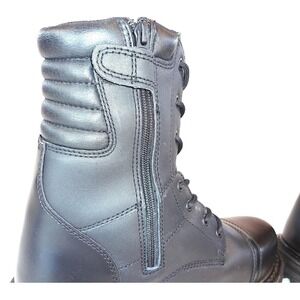 The 8-inch, all-black uppers have side zippers and a standard lacing system to keep your feet securely locked inside. Tumbled, oil-tanned leather creates uppers that are waterproof and boots that have a flexible and comfortable fit around your feet.