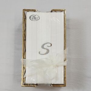 THR Home Decorative 16x White Napkins Monogrammed "S" Gold Napkin Holder NWT