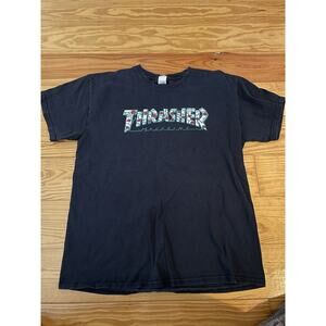 THRASHER SKATE MAGAZINE MENS SHIRT Large BLACK TEE T-SHIRT THORN ROSES COTTON