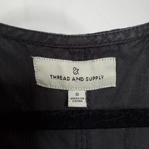 EXCELLENT pre-owned condition: Thread & Supply Tencel Sleeveless Jump Suit in Graphite Acid (charcoal gray). This easy and classic silhouette is made with our signature soft fabrics to make sure you stay comfy while looking cute. Featuring adjustable wait tie, side pockets and button front detailing. 100% Tencel Lyocell. MSRP $94