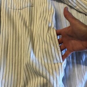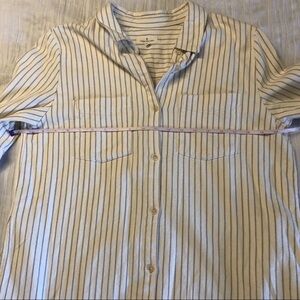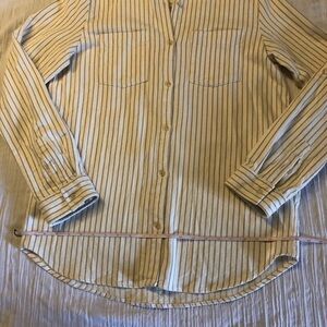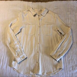 THREAD & SUPPLY WOMENS CREAM & TAN STRIPED FLANNEL BUTTON DOWN SHIRT SIZE LARGE