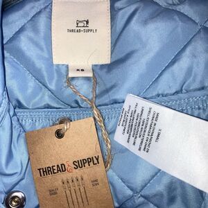 THREAD & SUPPLY Light Blue Cropped Quilted Vest - Pockets; Boxy Relaxed Fit; New & Excellent- Size XS - Bust-42" /. Waist-42" / Length-18"