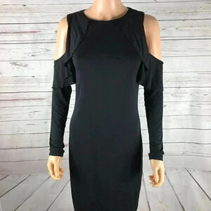 THREE DOTS Black Long Sleeve Cold Shoulder Sheath Dress SMALL