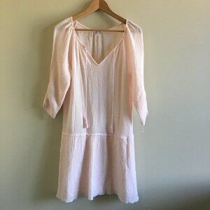 THREE DOTS Drop-waist Gauze Peasant Dress Midi