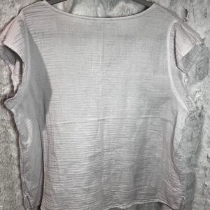 THREE DOTS - LARGE - White cotton blouse with short sleeves and V-neck #picnic #chic #boho #church #beauty