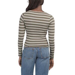 THREE DOTS Olive Stripe Scoop Neck Tee