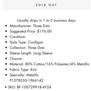 THREE Dots Anthropologie Metallic Open Cardigan Sweater