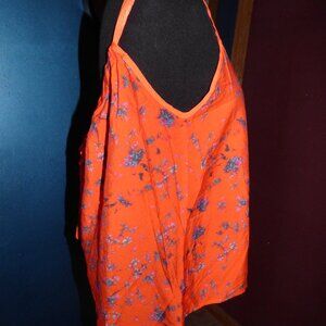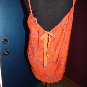 THREE STONES GOTH BOHO RED MULTI FLORAL TIE BACK TOP BLOUSE L
