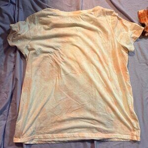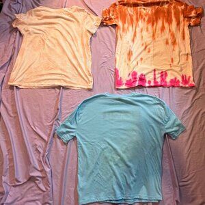 THREE short sleeve graphic tees, orange/lt blue/white/tie-dye BIG XXS SMALL XL