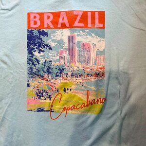 "WILD FABLE" S/S GRAPHIC TEE, VERY BIG XXS - Crewneck, short sleeves, light blue with "Brazil Copacabana" graphic on front