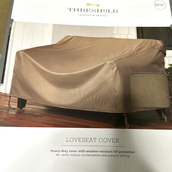 THRESHOLD LOVESEAT COVER W/ WEATHER RESISTANT UV PROTECTION 55 1/2'' Canvas like material. NEW Buyer gets what you see in pictures Orders mail fast and daily. Thank you