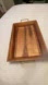 Used with watermarks THRESHOLD large rectangular wooden serving tray with gold tone handles that have some tarnishing, can be retained or add material to cover, good condition.