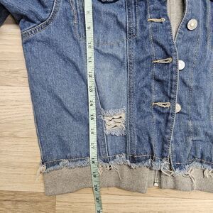 THRILL JEANS Womens Blue Gray Layered Distressed Denim Jean Jacket Medium