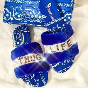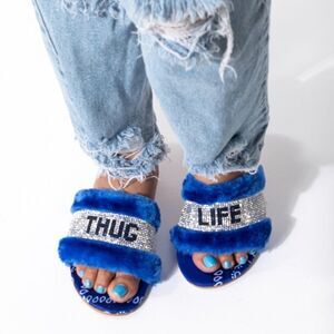 Please take half size for better fitting. Faux Fur with bling words THUG LIFE